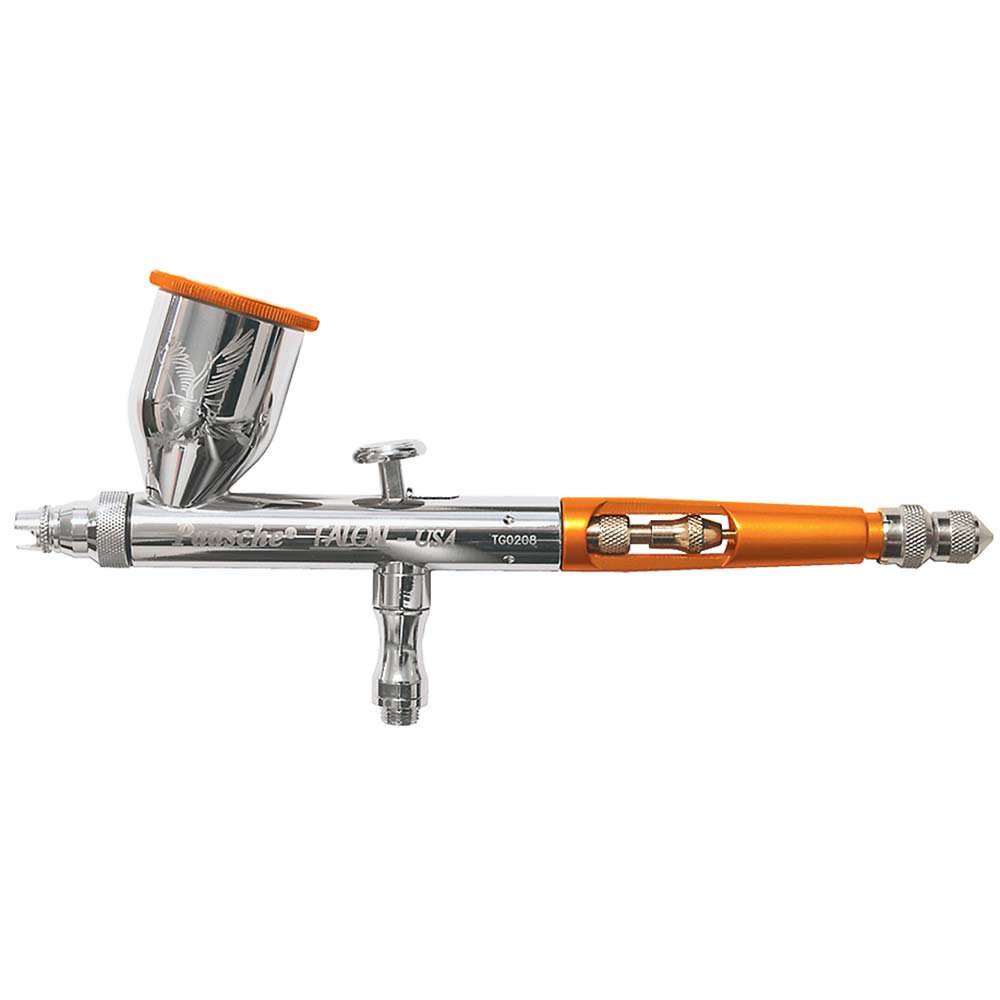 Paasche Talon Double Action Airbrush is durable and easy to assemble. It is highly suitable for fine detailed patterns. Manufactured in the United States, it weighs 7 oz. It contains Talon airbrush, braided air hose, and airbrush lessons booklet.